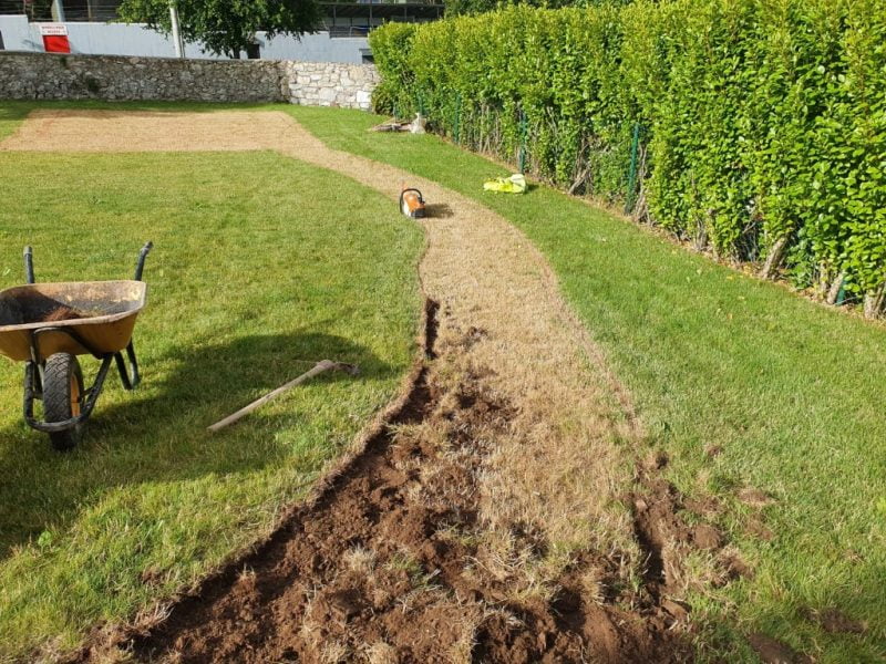 We started by digging out the lawn and laying a new hardcore foundation on top of a heavy duty membrane to prevent weed growth.